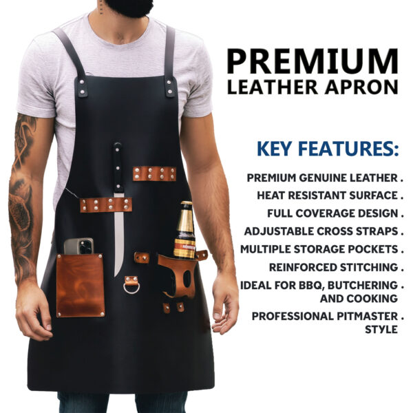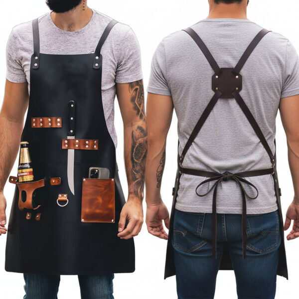 The Leather BBQ Apron for Pitmasters features thick, high-quality leather construction. It provides strong resistance against heat and splashes. You stay protected while grilling, smoking, or butchering.