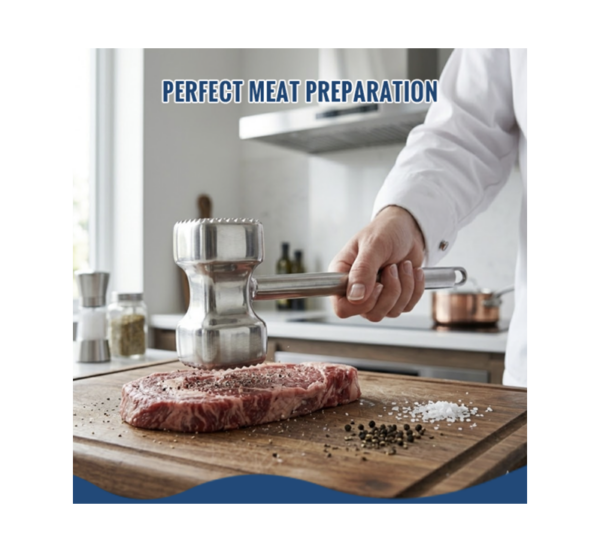 The dual-sided head increases versatility. Use the textured side to break down tough fibers. Use the flat side to flatten cutlets evenly. This design makes the Premium Zinc Alloy Meat Tenderizer Mallet with Anti-Skid Handle ideal for various meats.