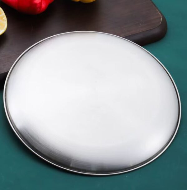 These Stainless Steel Brushed Metal Dinner Plates are crafted from heavy-duty stainless steel. The solid weight prevents bending or sliding. Food stays centered and secure during serving.